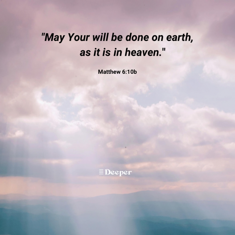 Prayer: Father, I embrace Your will for my life. Let it be to me on earth as it is in heaven.